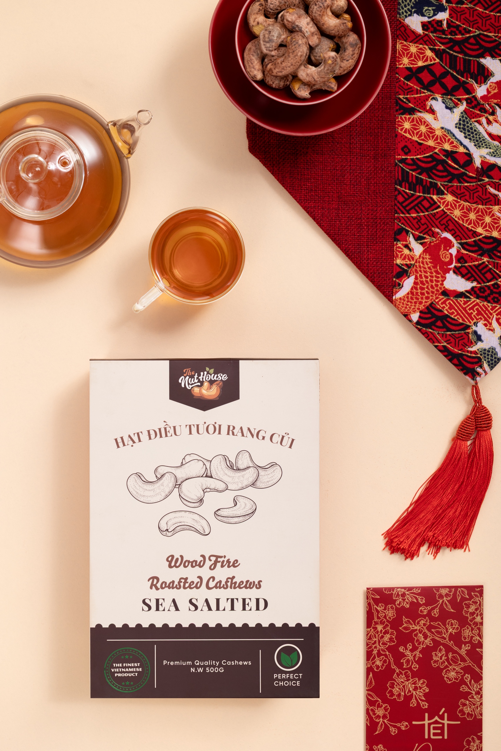 Export quality for the Australian and European markets, especially 380-410 nuts/kg. These cashews are rich, fragrant, and suitable for snacking, with just the right amount of salt. The most beautifully packaged export product with uniformly sized nuts.