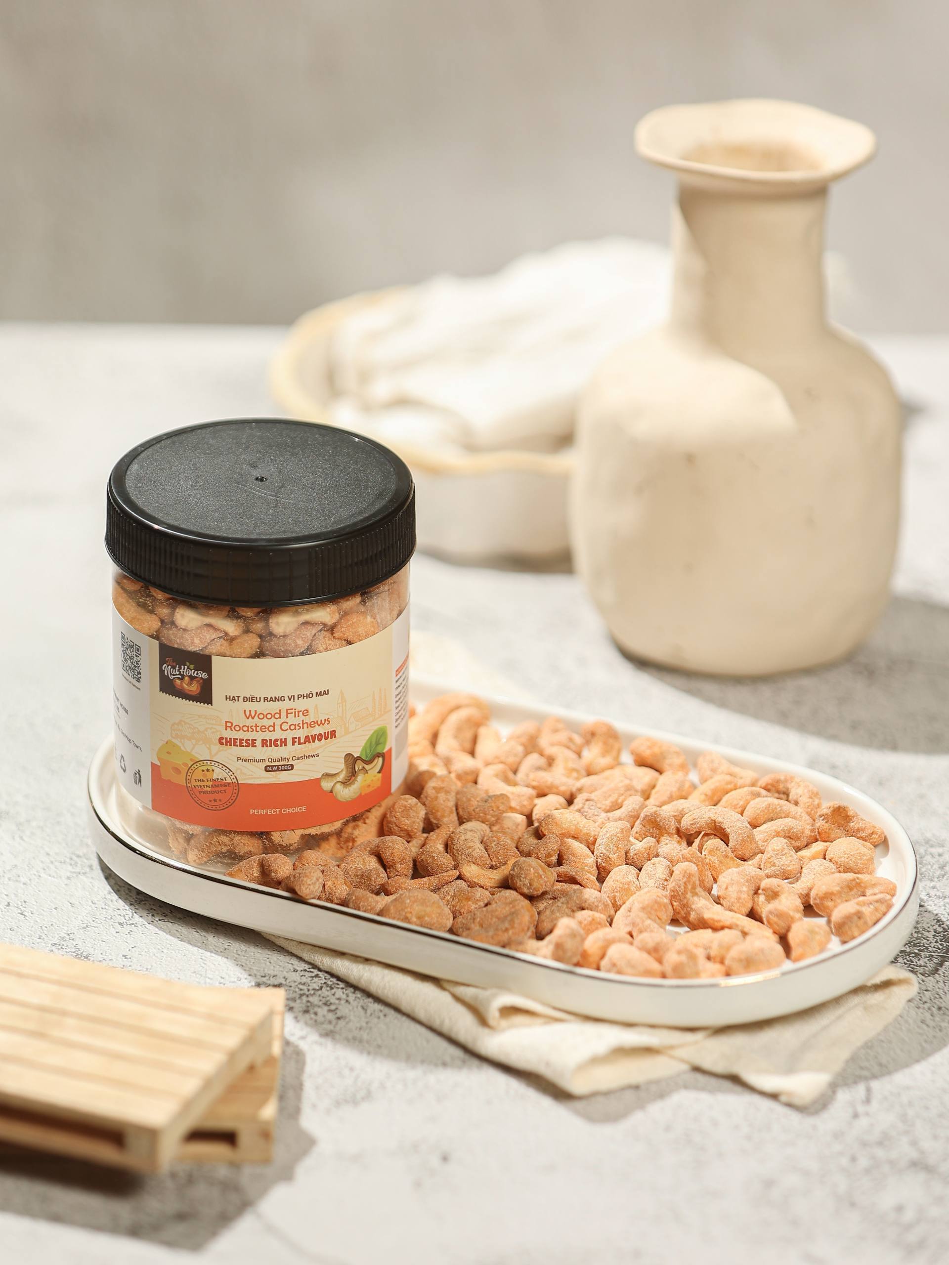 The Nut House’s moderately flavored cheese cashew nuts are made from top-grade Binh Phuoc cashews, known for their large, firm kernels. Blended with just the right amount of seasoning, they offer a delightful taste experience. These cashew nuts are highly nutritious and are loved in many countries around the world.