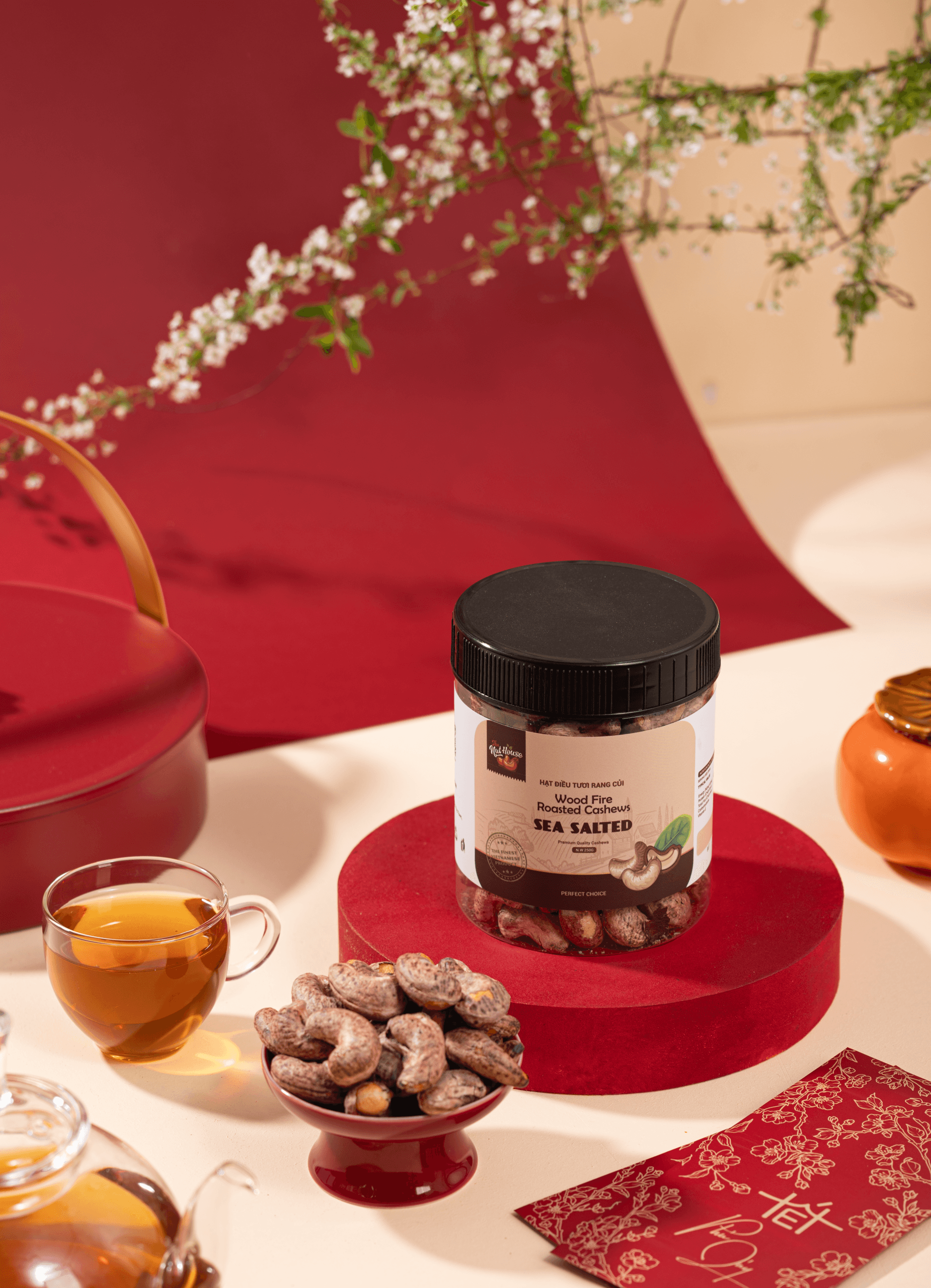 Wood Fire Roasted Cashews with Sea Salt 300g W240 Round Box – Premium Quality Cashew Nuts, Easy to Peel